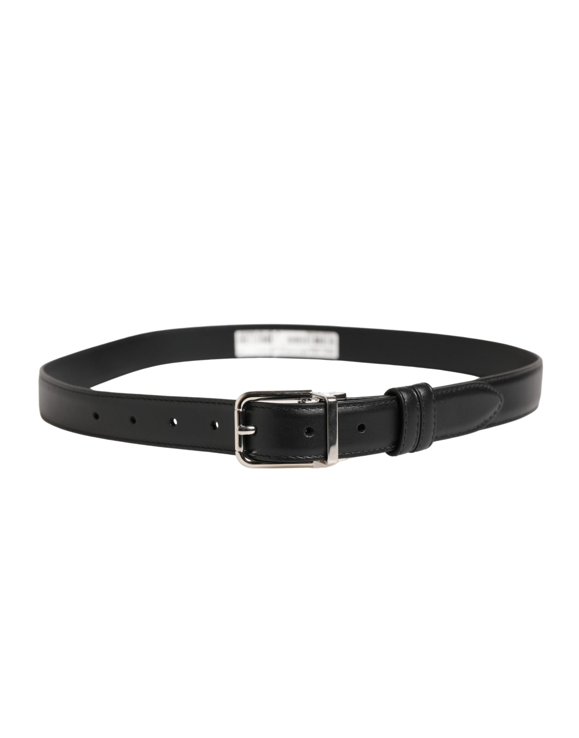 Dolce & Gabbana Men Black Classic Leather Metal Buckle Belt
