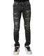 Dolce & Gabbana Black Washed Tattered Slim Fit Denim Jeans