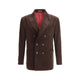 Brunello Cucinelli’s wool Blazer Jacket is a sophisticated piece, featuring a ribbed velvet design that lends a refined texture. The peaked lapels add a touch of elegance, while the double-breasted front button closure with grooved buttons recalls a classic, high-quality style. The two patch welt pockets and slit pocket on the front offer practicality without sacrificing style. The two slits at the back ensure a comfortable fit and excellent freedom of movement.