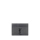 Black Calfskin Card Holder by Saint Laurent, card slot on both sides, black embossed logo on front.