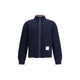 The Thom Browne bomber jacket features a front zip closure and distinctive tricolor details that add a touch of originality and style. The design is completed by a patch with the brand’s logo, making the piece instantly recognizable and perfect for those seeking a modern and refined look.