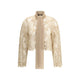 Fabiana Filippi’s Macramé lace cropped Shirt by Fabiana Filippi is a refined, lightweight garment made of fine lace inspired by Alberto Burri’s work Combustioni. The fabric, enriched with a mohair thread, creates an elegant contrast of porosity and thickness. With a crew neck and short silhouette, it is produced entirely in Italy through sustainable processes, combining art, craftsmanship and responsibility.