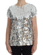 Gorgeous brand new with tags, 100% Authentic Dolce & Gabbana white with silver sequined party evening blouse top. This item comes from the exclusive MainLine Dolce & Gabbana Collection.