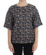 Dolce & Gabbana Gray Gold Key Print Silk Blouse T-shirt