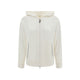 Brunello Cucinelli’s cotton Hoodie is a casual yet sophisticated piece enhanced by unique details. The two side welt pockets are embellished with appliquéd shiny jewels, adding a touch of elegance to the design. The zipper closure on the front panel and the monochrome pattern make it a versatile and easy-to-match piece. This sweatshirt combines comfort and style, ideal for a modern and refined look.