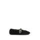 Ferragamo’s Gancini-embellished Ballerinas by Ferragamo reinterprets a classic with a playful, contemporary twist. Featuring a contoured neckline and soft silhouette, it is distinguished by a curly shearling lining, ideal for the cold season. The rubber sole maintains the usual flexibility, while the Gancini buckle on the strap adds an iconic and refined detail.