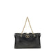 Valentino Garavani’s medium Panthea Shoulder Bag combines elegance and character thanks to its chevron motif in shiny matte nappa leather, embellished with enameled feline heads set with Swarovski® crystals. Equipped with chain handles and a studded, adjustable and removable leather shoulder strap, it offers double wearability. Antiqued gold metal hardware, the Signature VLogo logo and a nappa leather interior with functional pockets complete the design.