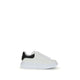 The Oversize Sneakers by McQueen feature an iconic silhouette in white calf leather, enhanced with a black heel adorned with crystals and accented by the McQueen signature. The thick rubber sole provides a bold, contemporary look, ideal for those seeking both style and comfort in one model.