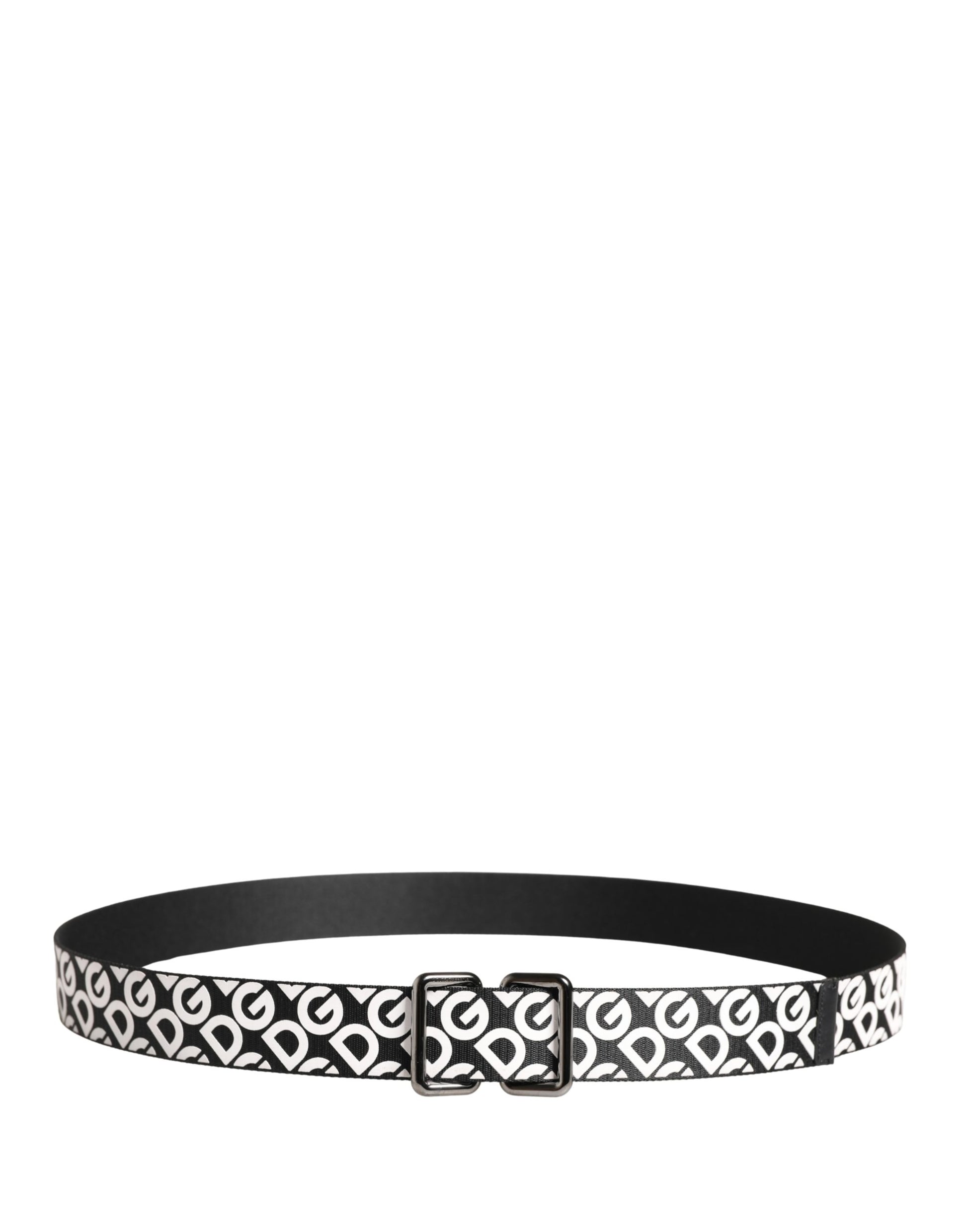 Dolce & Gabbana White Black Logo Leather Metal Buckle Belt