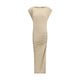 The draped midi Dress by Marant Étoile combines elegance and comfort in a feminine and modern silhouette. Crafted from stretch fabric that gently hugs the body, it features cap sleeves, a crew neck, and a midi length. The draping effortlessly flatters the figure, making it perfect for a sophisticated yet casual look.