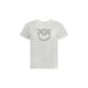 Pinko’s T-Shirt is distinguished by the embroidered logo on the front, enriched with rhinestones and pearls that give the garment a touch of brightness and elegance, perfect for a refined and feminine look.