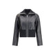 The Short Gruviera Jacket by Pinko blends biker attitude with feminine elegance. Crafted from supple nappa leather, it features a wide ribbed knit hem and a high ribbed collar for both comfort and character. Finished with a sleek metal zip closure, it’s the perfect outerwear piece to face seasonal transitions with bold energy and style.