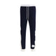 Thom Browne’s Horizontal Banded Sweatpants combine comfort and recognition. The elasticated waistband with drawstring ensures an adjustable fit, while the ribbed hem emphasizes the sporty cut. The iconic horizontal side bands add a distinctive touch, complemented by the signature patch sewn on the front, an emblem of the brand’s unmistakable style.