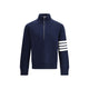 The Sweater by Thom Browne features a contrasting 4-Bar intarsia, combining elegance with a contemporary edge. Designed with refined detailing, it includes a half-zip collar that adds a sporty and versatile touch. A distinctive piece blending comfort with the brand’s signature sophistication.